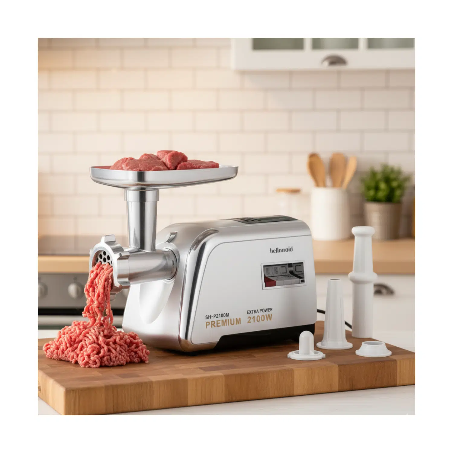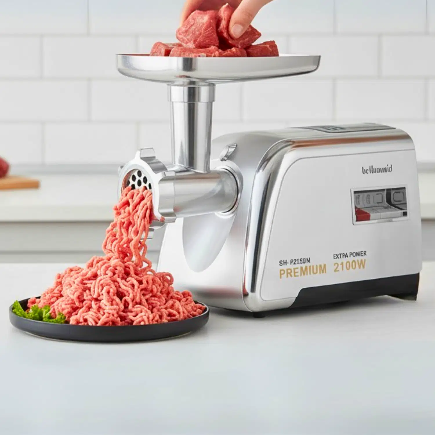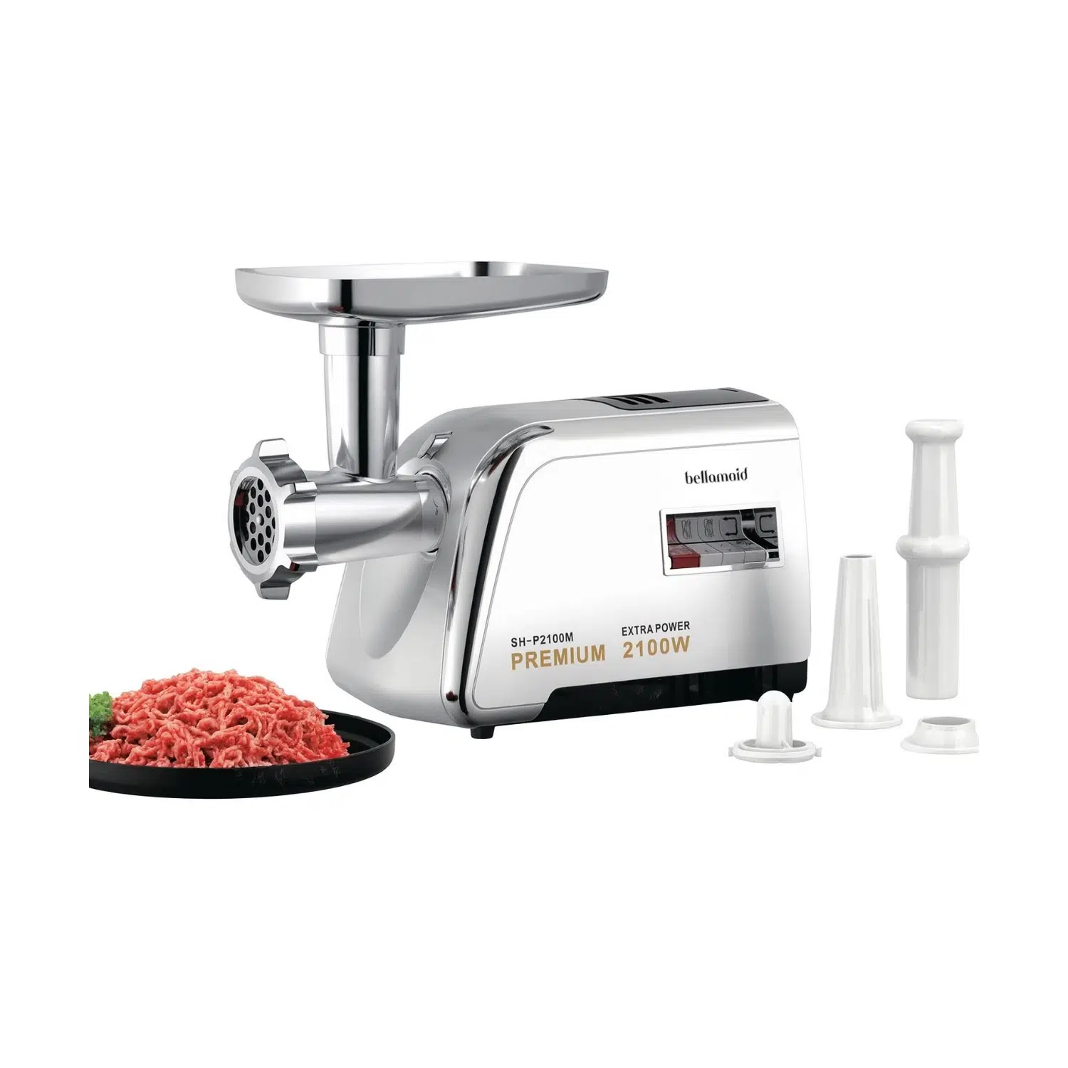 Bellamaid 2100W Paslanmaz Çelik Elektrikli Et Kıyma Makinesi, mutfağınızda profesyonel kalitede kıyma işlerini kolay ve hızlı bir şekilde halletmeniz için tasarlanmıştır. Yüksek performansı ve dayanıklı yapısı sayesinde, evde köfte, kebap, lahmacun veya ev yapımı sucuk/sosis hazırlamayı zahmetsiz hale getirir.