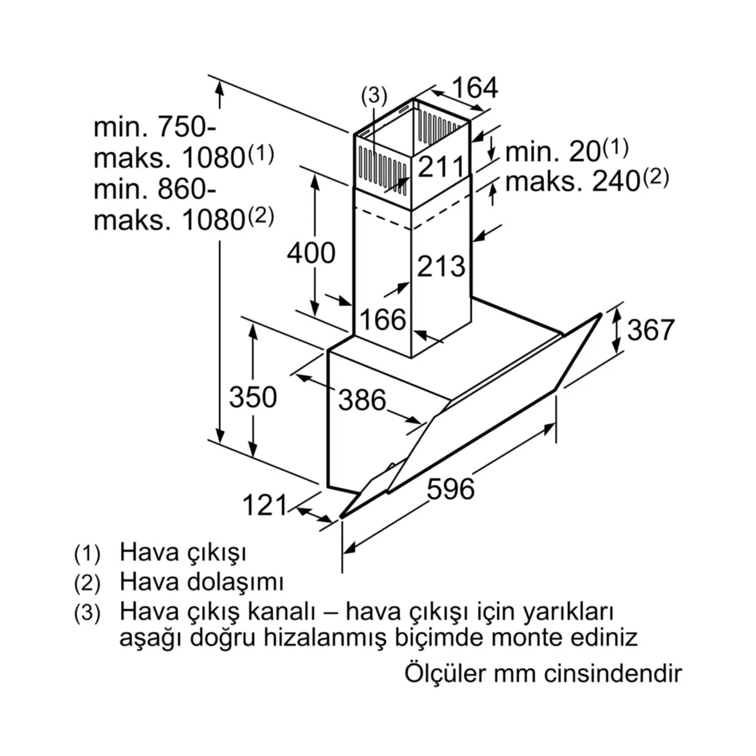 Gazlı Ocak Üzerindeki Minimum Mesafe: 570 Mm