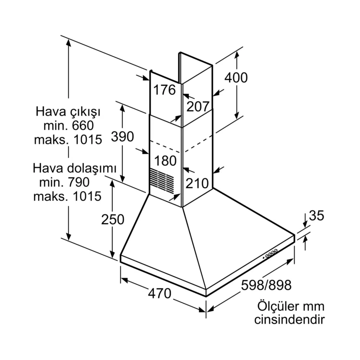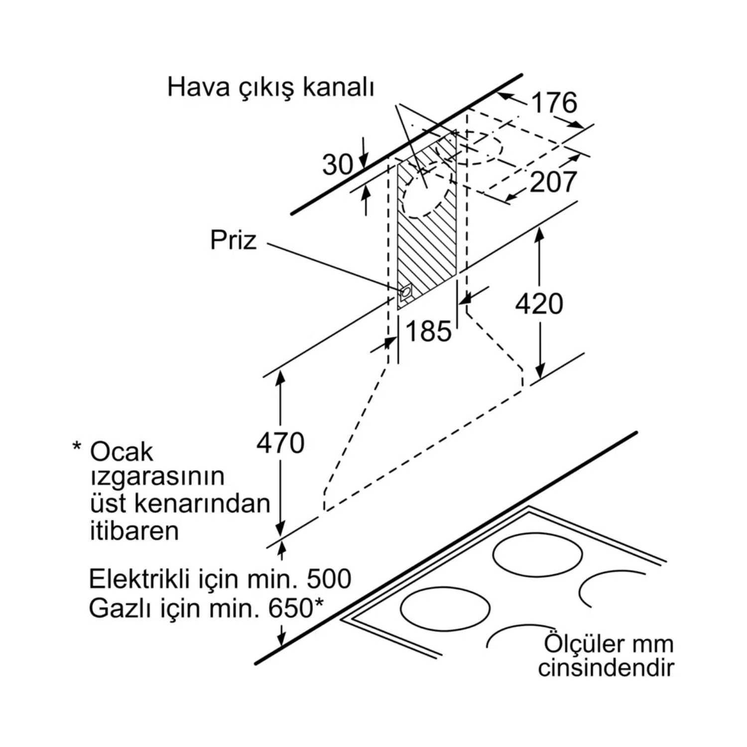 Gazlı Ocak Üzerindeki Minimum Mesafe: 650 Mm