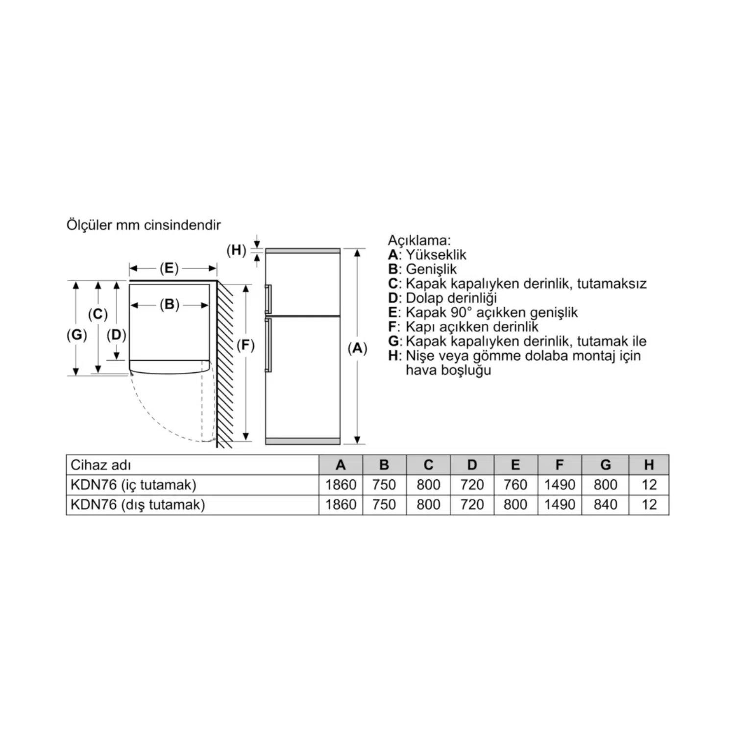 Ürün Ölçüleri (Yükseklik X Genişlik X Derinlik): 1860x750x800 Mm