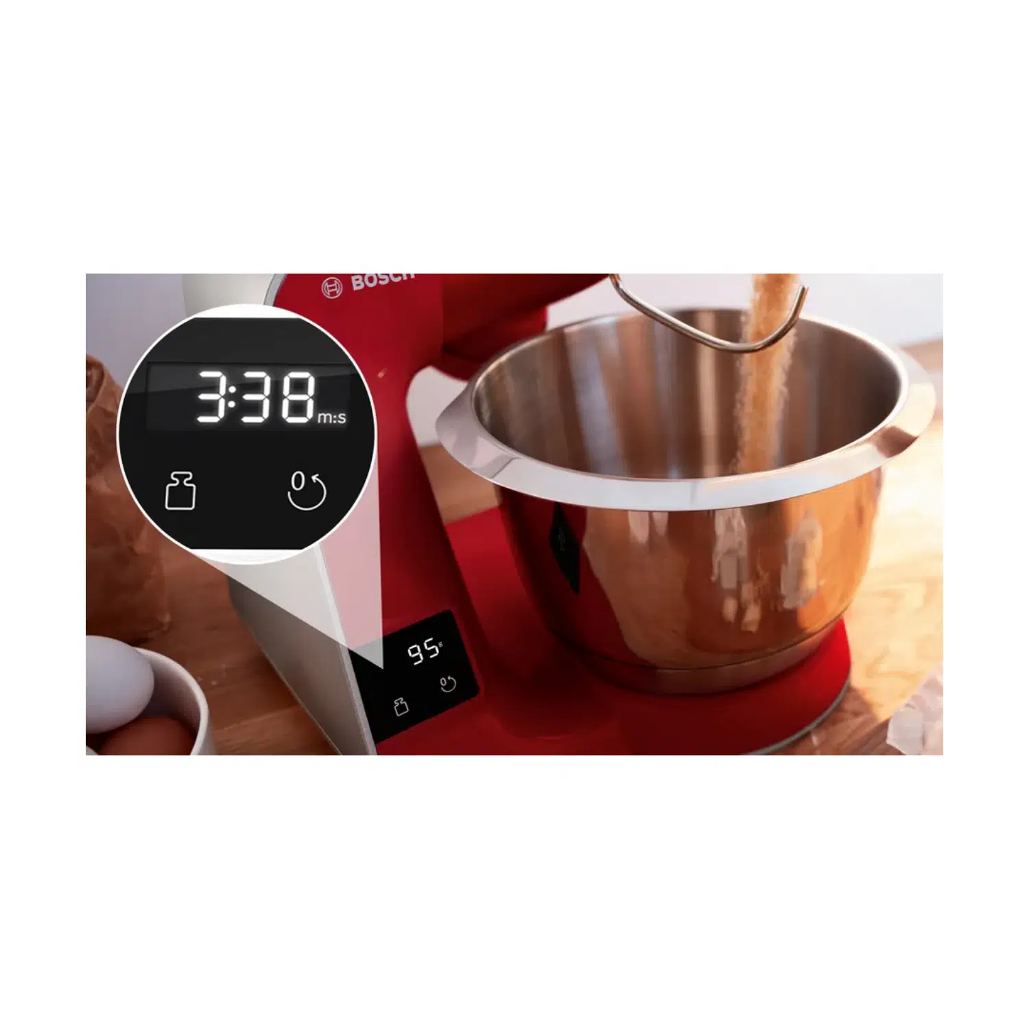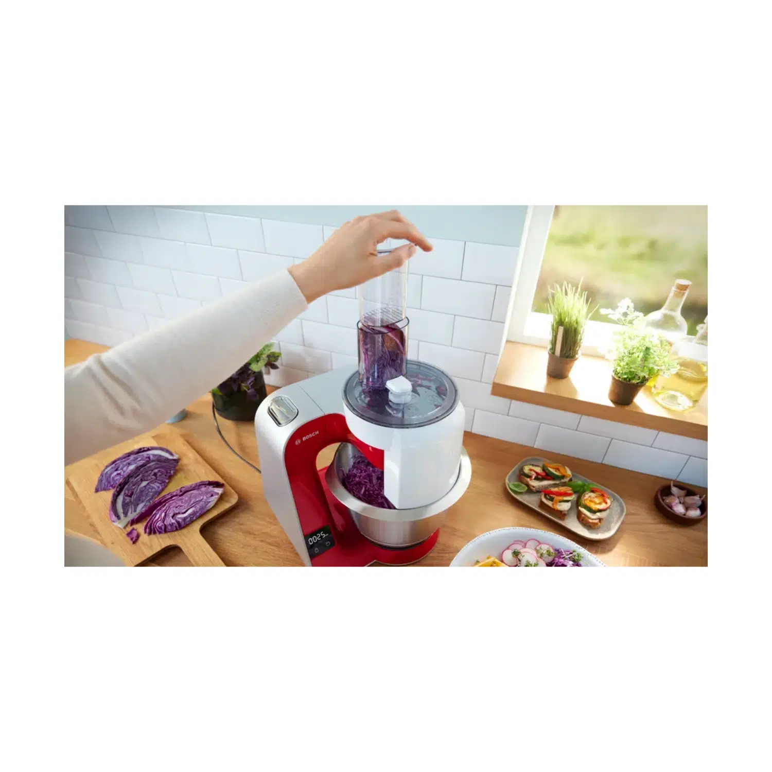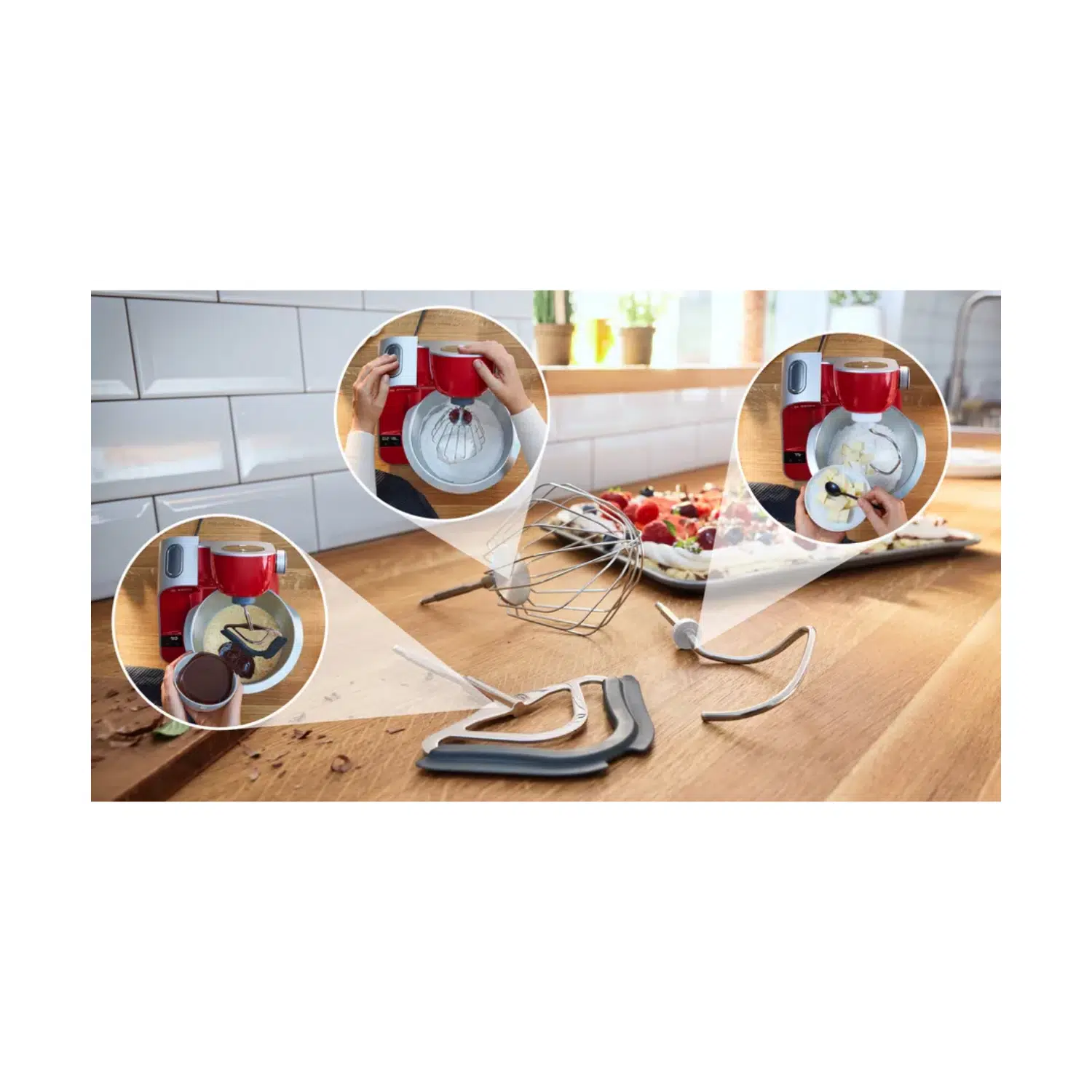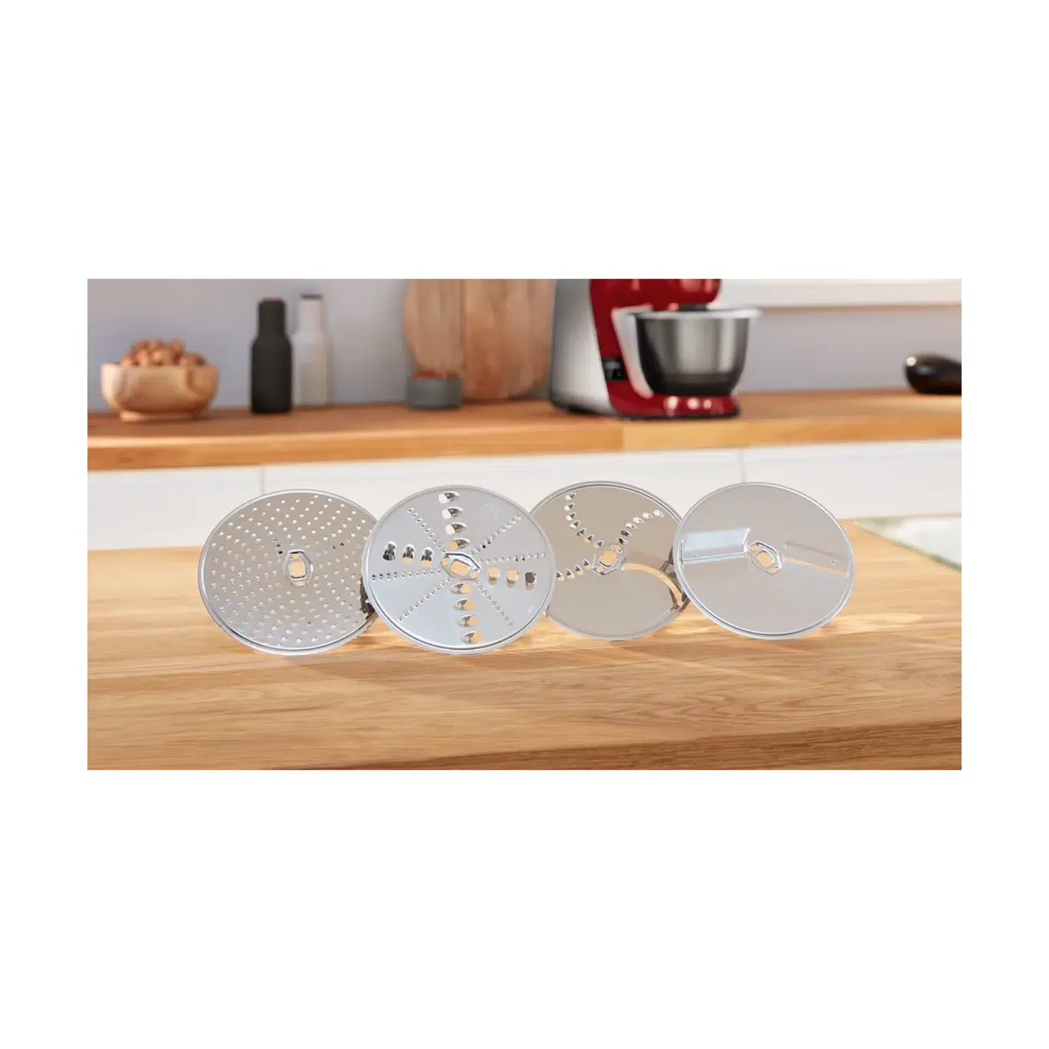 Entegre Aksesuarlar: 1 X Kapak, 1 X Devamlı Isıtıcı, 1 X Paslanmaz Çelikten Karıştırma Kabı, 1 X Karıştırma Kancası, Metal, 1 X Mikser Parçası, Plastik, 1 X Çevrilebilir Raspa Diski, 1 X Orta İncelikte Rendeleme Diski, 1 X Çift Taraflı Kesme/Rendeleme Diski, 1 X Çift Taraflı Kesme Diski