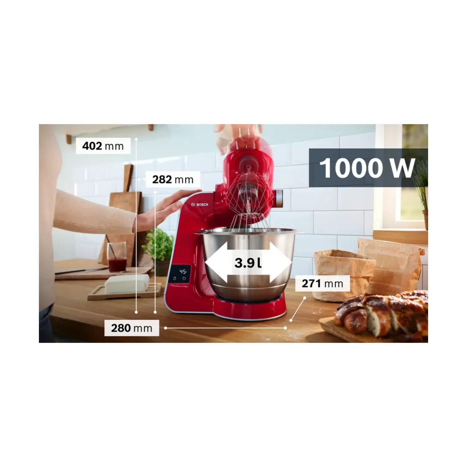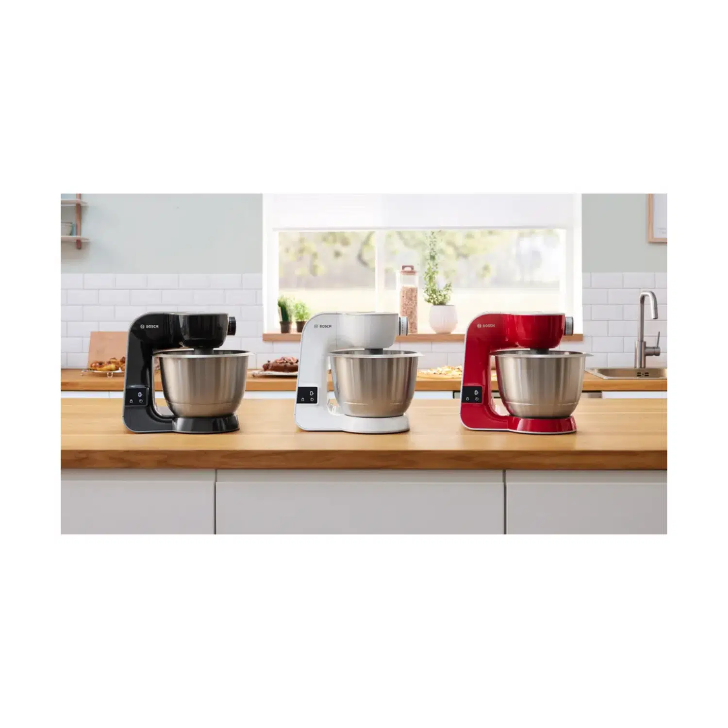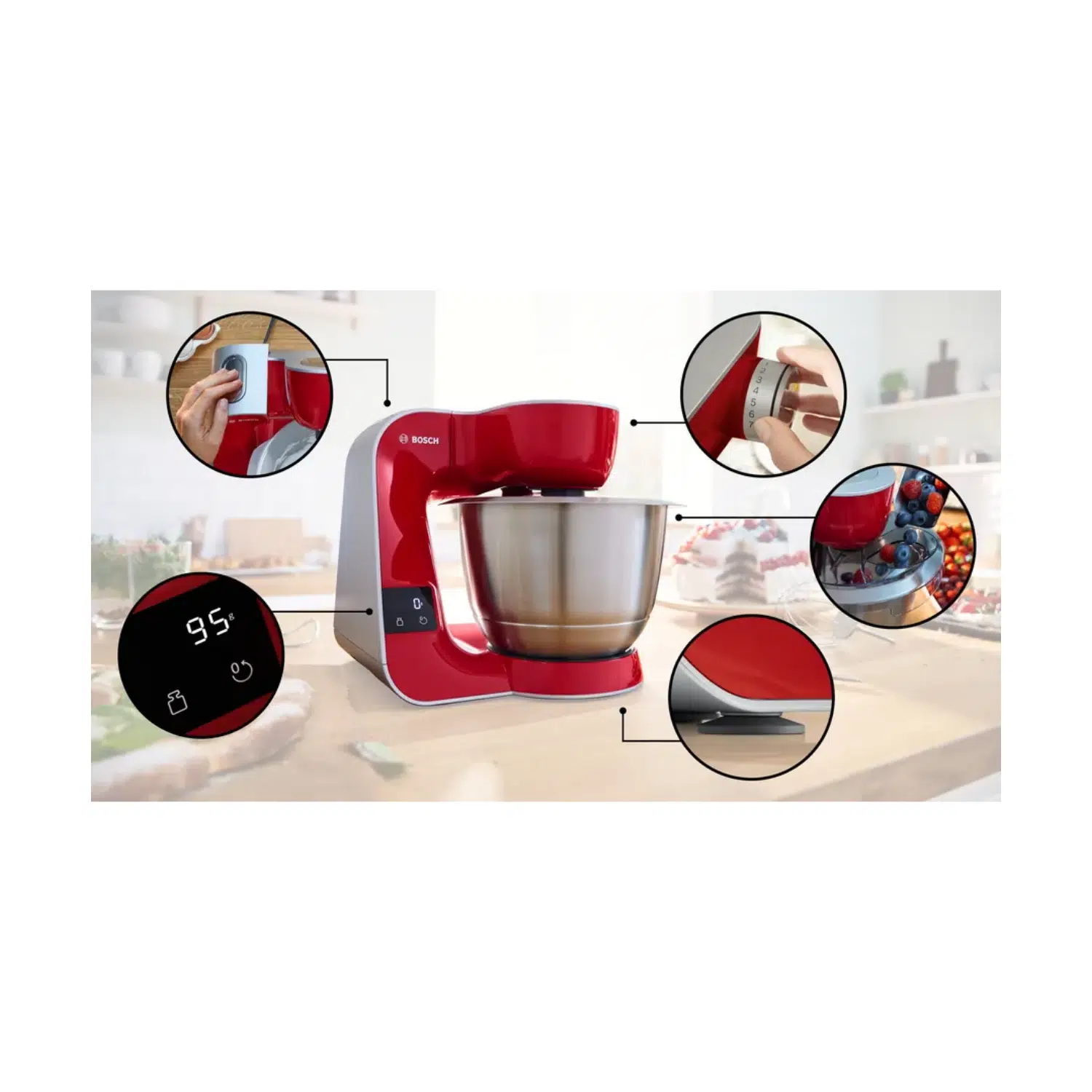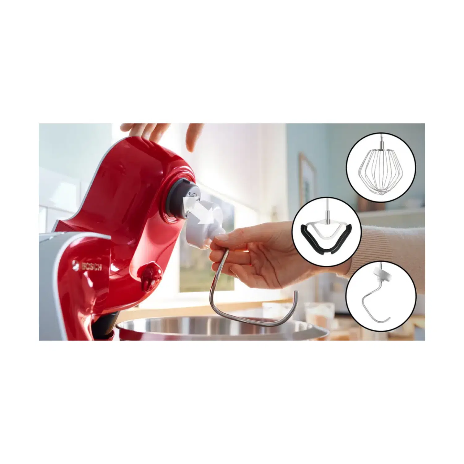 Entegre Aksesuarlar: 1 X Kapak, 1 X Devamlı Isıtıcı, 1 X Paslanmaz Çelikten Karıştırma Kabı, 1 X Karıştırma Kancası, Metal, 1 X Mikser Parçası, Plastik, 1 X Çevrilebilir Raspa Diski, 1 X Orta İncelikte Rendeleme Diski, 1 X Çift Taraflı Kesme/Rendeleme Diski, 1 X Çift Taraflı Kesme Diski